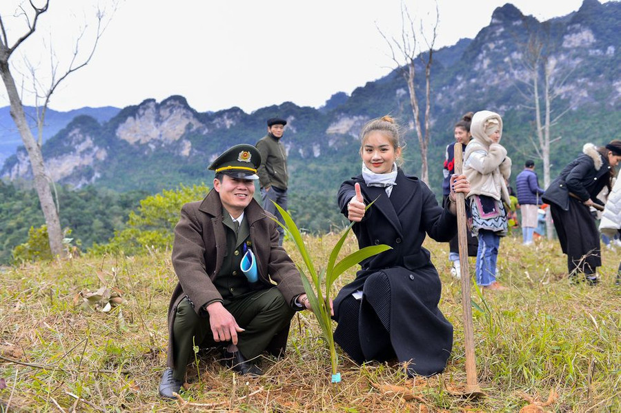 | Bùi Minh Anh tham gia trồng cây xanh tại tỉnh Tuyên Quang. Ảnh: HOÀNG KHÔI NGUYÊN |