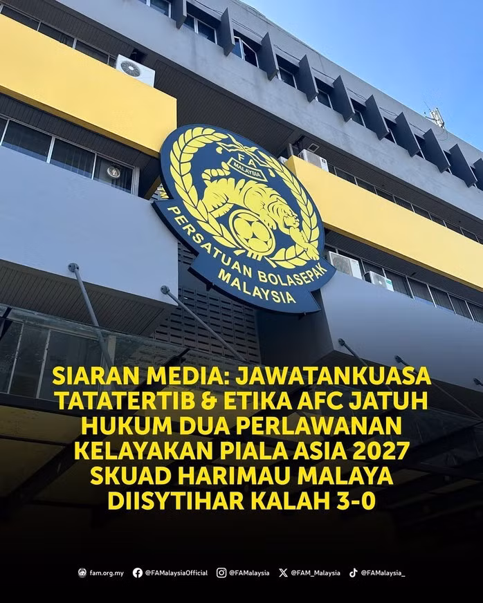 Theo thông báo của Liên đoàn Bóng đá Malaysia (FAM): "Cuộc họp do Chủ tịch Ủy ban Kỷ luật & Đạo đức AFC, ông Jahangir Baglari, chủ trì đã kết luận rằng FAM vi phạm Điềbu 56 Bộ Quy tắc Kỷ luật & Đạo đức AFC do sử dụng cầu thủ không hợp lệ trong hai trận đấu vòng loại Asian Cup 2027".