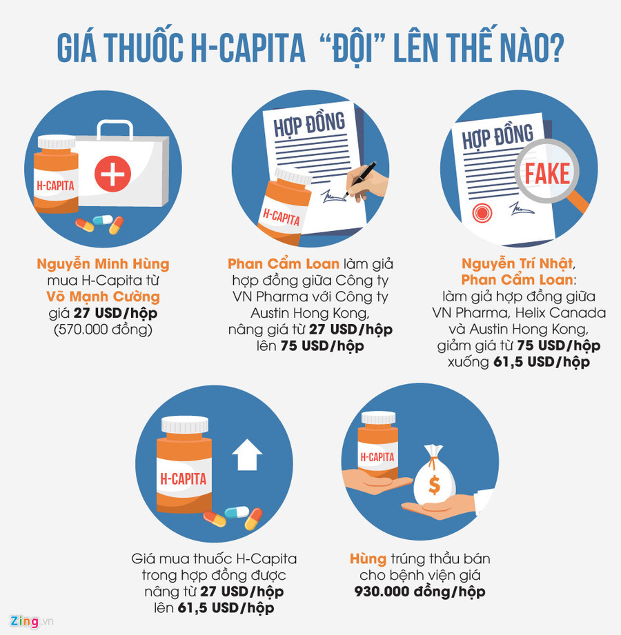 Sau đó, VN Pharma được phê duyệt trúng thầu cung cấp 471.275 viên thuốc H-Capita (tương đương 15.709 hộp) cho các bệnh viện tại TP. HCM với giá là 31.000 đồng/viên, tương đương 930.000 đồng/hộp (mỗi hộp 30 viên).
