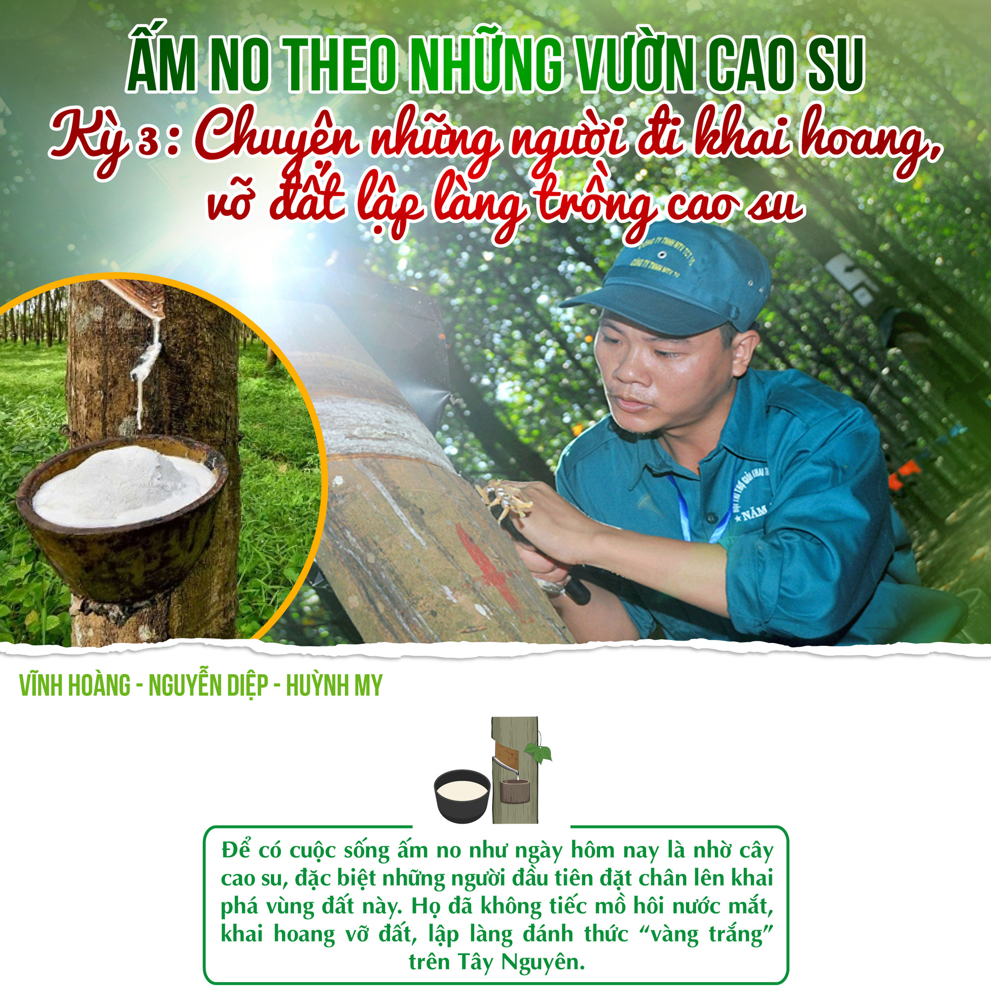 Dòng Sê San chảy từ thượng nguồn Kom Tum về Gia Lai rồi đổ sang Đông Bắc Campuchia. Hai bên tả ngạn, hữu ngạn và hạ lưu của dòng sông ấy là bạt ngàn cao su xanh ngát, kéo dài từ Đăk Glei, Ngọc Hồi, Sa Thầy về Ia Grai, Đức Cơ, Chư Prông, Chư Sê Mang Yang và các tỉnh Đắk Lắk, Lâm Đồng, Đắk Nông… Những rừng cao su xanh mát xen lẫn với các khu dân cư trù phú đã tạo nên những bức tranh với những gam màu tươi sáng. Cây cao su được gọi là cây xóa đói, giảm nghèo, giúp cho hàng ngàn hộ dân vươn lên có cuộc sống no ấm, vừa phủ xanh đất trống, đồi trọc, vừa nâng độ che phủ rừng. Để có những rừng cao su xanh ngát ấy, những người đi “mở cõi” đã vỡ đất để trồng cao su phải đổ biết bao mồ hôi, công sức thậm chí là cả máu xương của mình.
