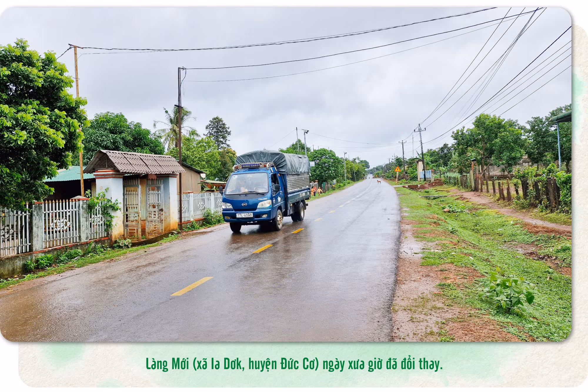 Một ngày cuối tháng Sáu, trời mưa như trút nước, chúng tôi tìm về làng Dơk Ngol nơi làng Mới sáp nhập vào theo chủ trương chung của Đảng và Nhà nước. Căn nhà mới của ông Rơ Mah Duen-người có uy tín của làng nằm ven đường lộ, đón chúng tôi với nụ cười thân thiện.