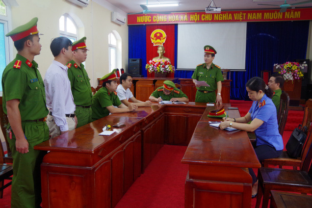 Cơ quan Công an đọc lệnh bắt bị can Nông Văn Tài, Chủ tịch xã Việt Vinh.