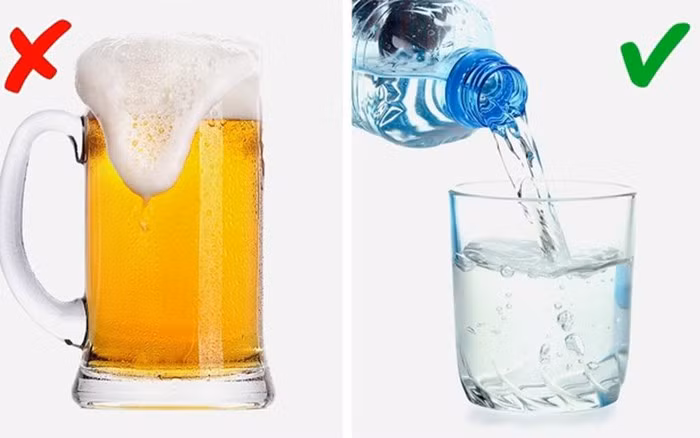 Nước vs Bia: Uống nước giúp cơ thể loại bỏ độc tố gây ra mùi hôi. Trong khi đó, uống bia có vẻ là một cách tốt để thư giãn sau một ngày làm việc, nhưng bia có thể gây ra mùi cơ thể, khi một số chất cồn thoát qua lỗ chân lông.