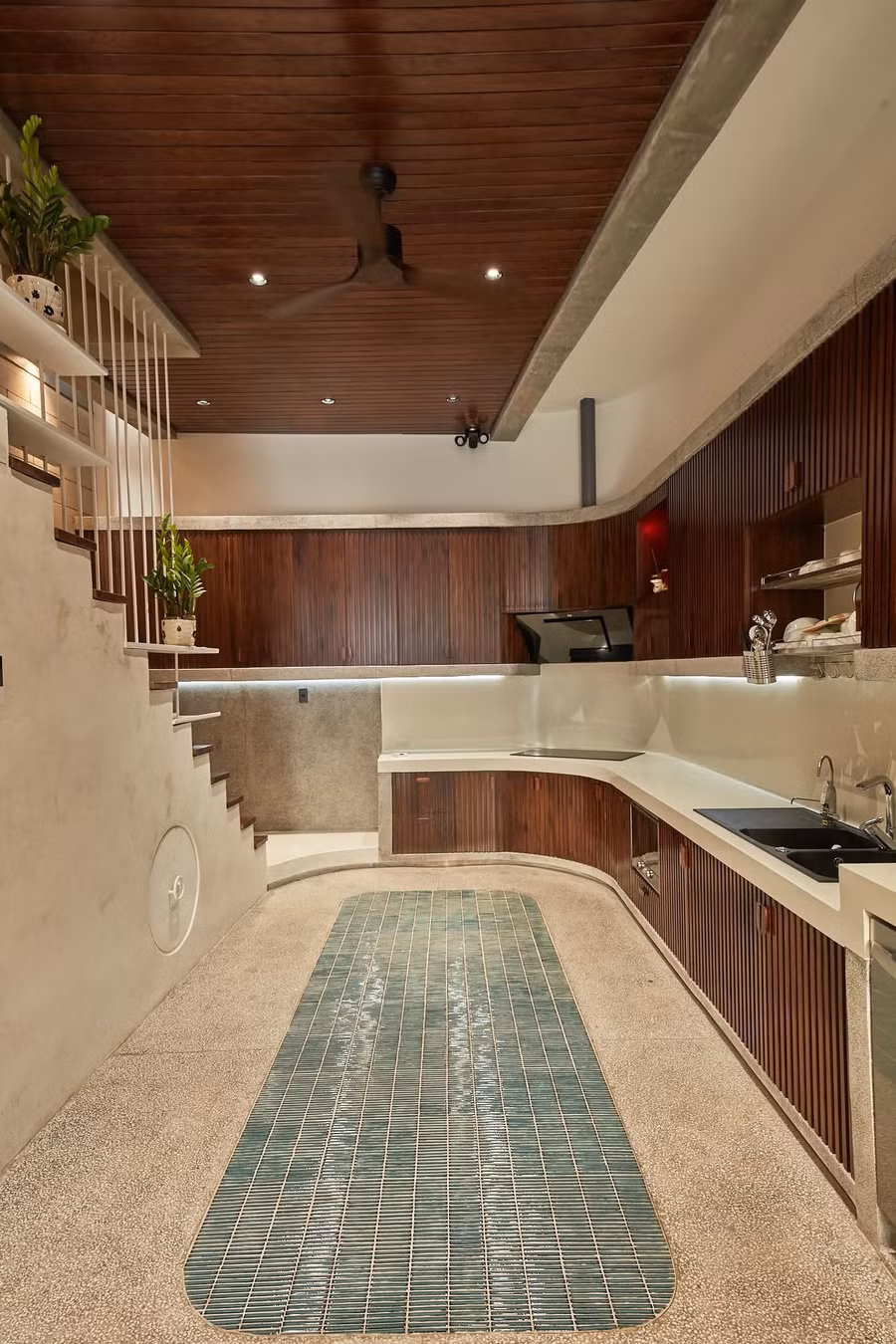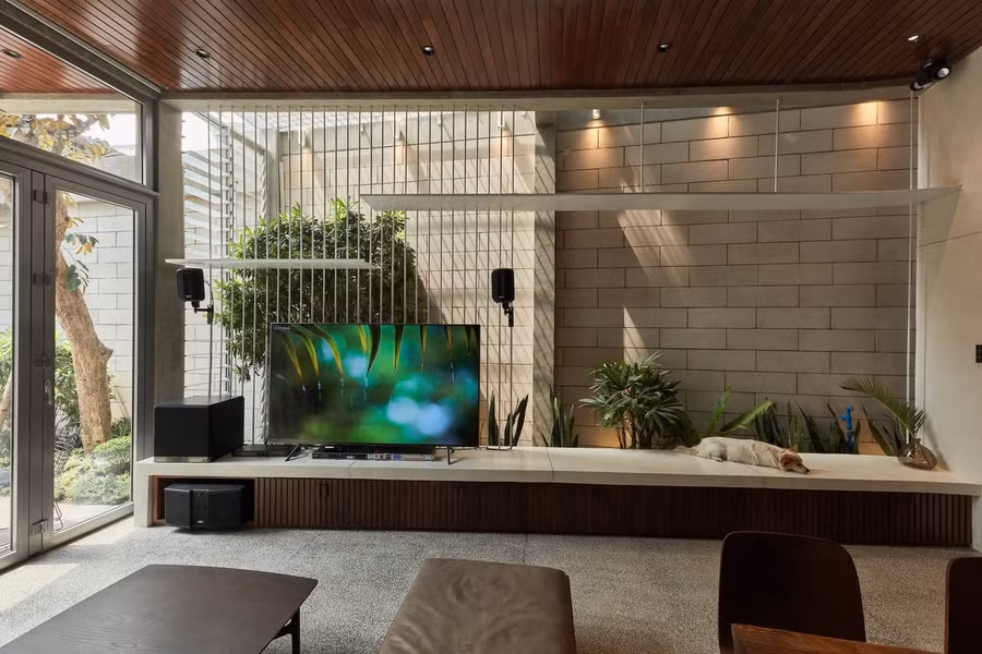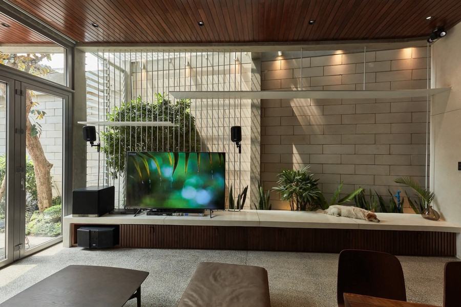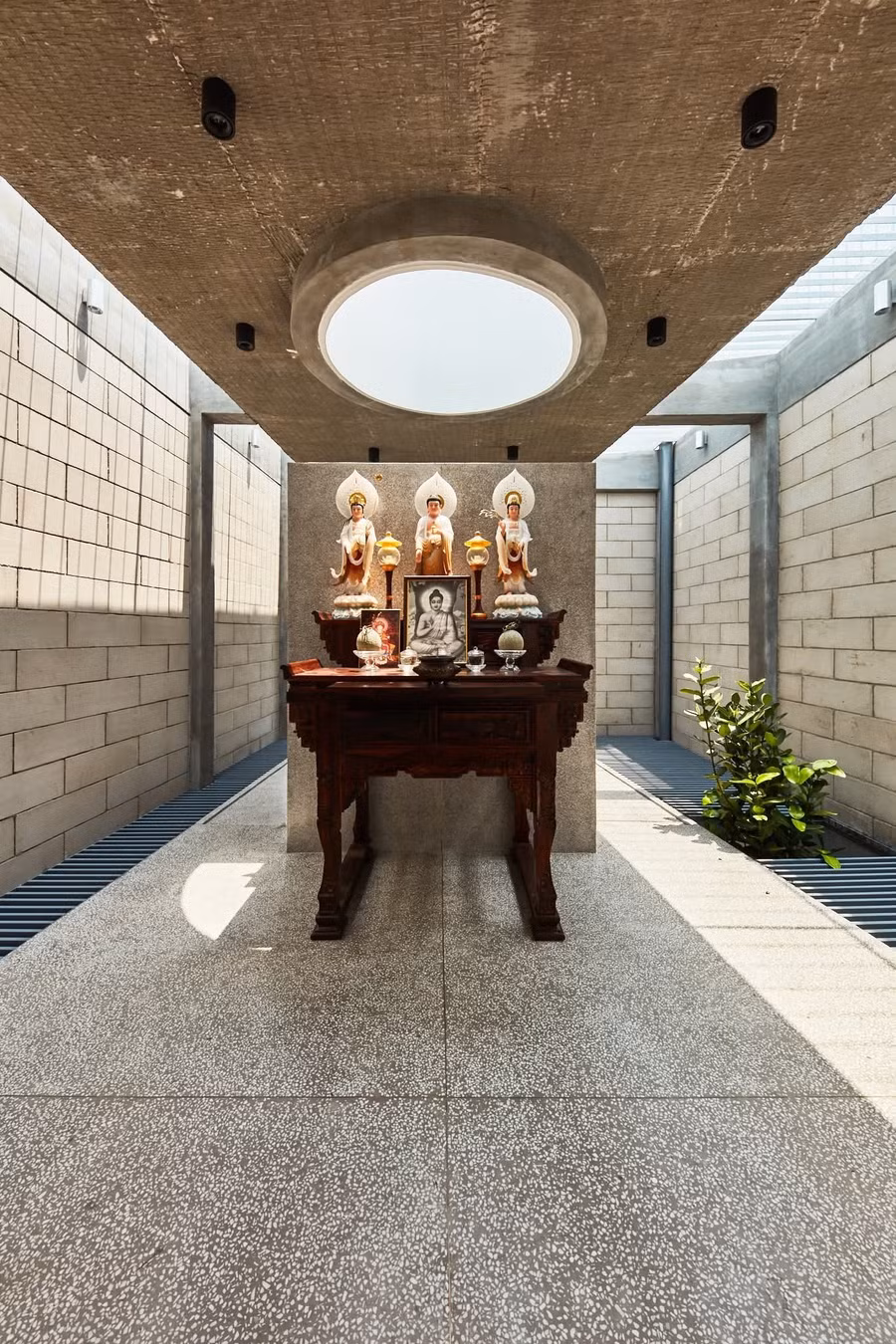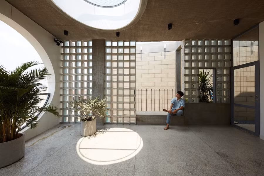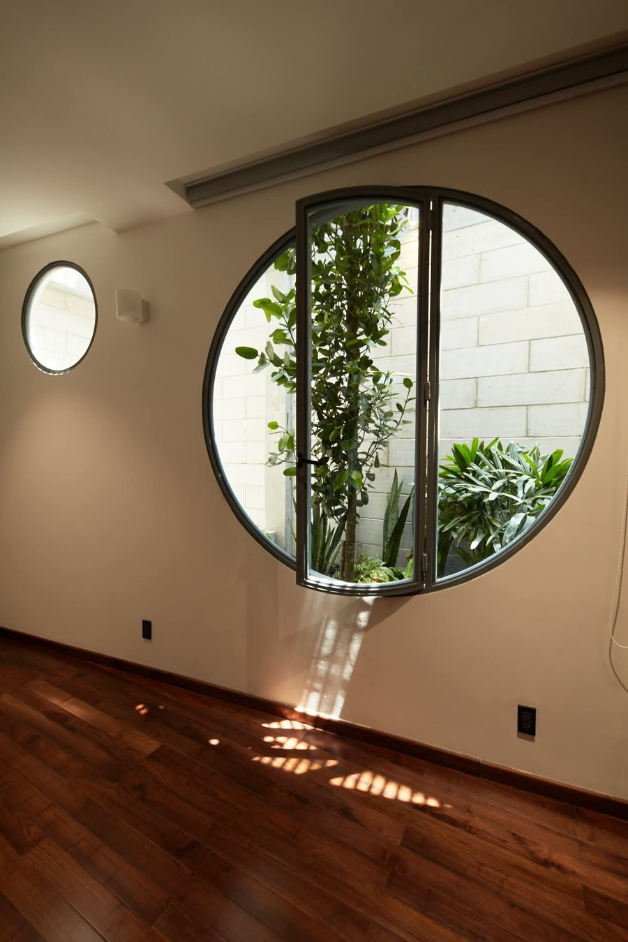 Các điểm nhấn hình học xuất hiện khắp nơi trong nhà, mang lại ngôn ngữ thiết kế thống nhất và tinh tế khi thực hiện vai trò lấy sáng và thông khí cho mọi ngóc ngách của không gian.