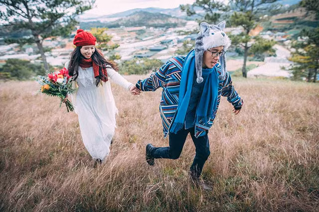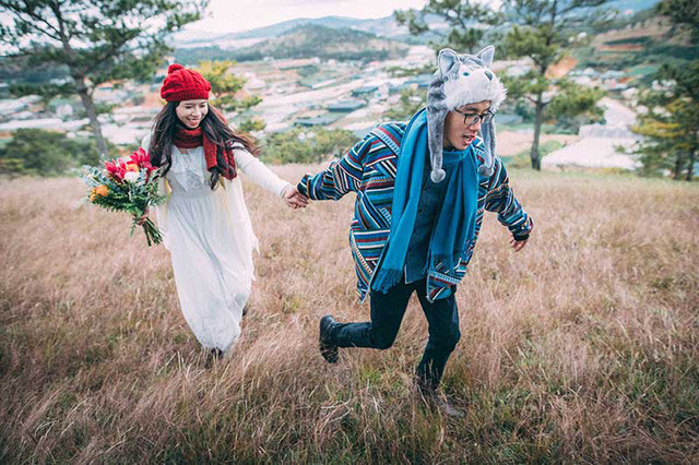 | Cả hai cùng thích không gian thoải mái ở đồng hoa nên quyết định chọn Đà Lạt làm địa điểm ghi dấu tình yêu trước khi “về chung một nhà”. |