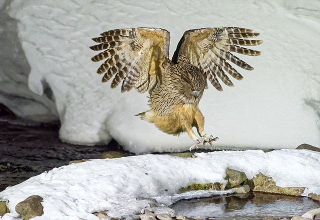 Peter Burkill cho biết, hình ảnh về con cú bắt cá này được chụp ở Hokkaido, Nhật Bản. Cú bắt cá (cú đại bàng) là loài lớn nhất và thuộc nhóm cú quý hiếm trên thế giới.