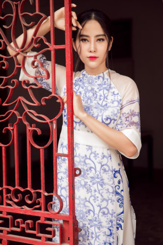 | Nam Em cho biết, cô cảm thấy rất hào hứng và diễn tốt khi khoác lên người những bộ áo dài truyền thống. Nó còn làm cô nhớ đến kỉ niệm những năm tháng diện áo dài trắng đi học. |