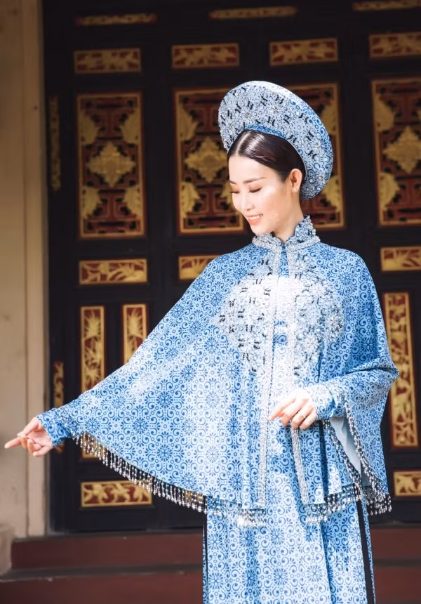 Ngoài áo dài kiểu dáng truyền thống, bộ sưu tập còn đem tới mẫu áo choàng theo phong cách hoàng gia.