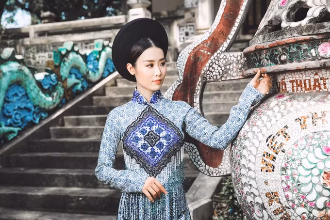 Những tà áo gợi nhớ đến hoa văn trên gạch bông một thời ở Việt Nam.