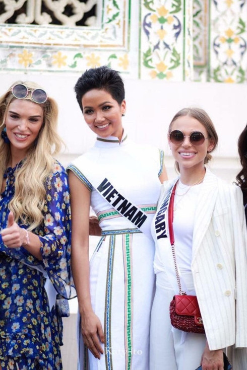 | Hoa hậu H'Hen Nie và nhà thiết kế Linh San chia sẻ về câu chuyện của chiếc áo dài thổ cẩm - Ảnh: THIÊN AN. |