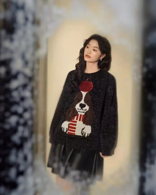 Áo len họa tiết động vật cũng đang chiếm trọn tình cảm của các tín đồ thời trang mùa đông. Những hình ảnh ngộ nghĩnh như chú gấu dễ thương hay chú cún nhỏ không chỉ mang lại sự đáng yêu mà còn thêm phần vui tươi cho không khí mùa lễ hội. Áo len họa tiết gấu phối cùng quần shorts và giày Mary Jane sẽ mang đến vẻ ngoài năng động, trẻ trung nhưng không kém phần nữ tính. Trong khi đó, họa tiết chú chó trên nền áo đen hoặc xanh có thể kết hợp cùng chân váy ngắn và tất cao cổ để tạo phong cách vừa hiện đại, vừa lạ mắt.