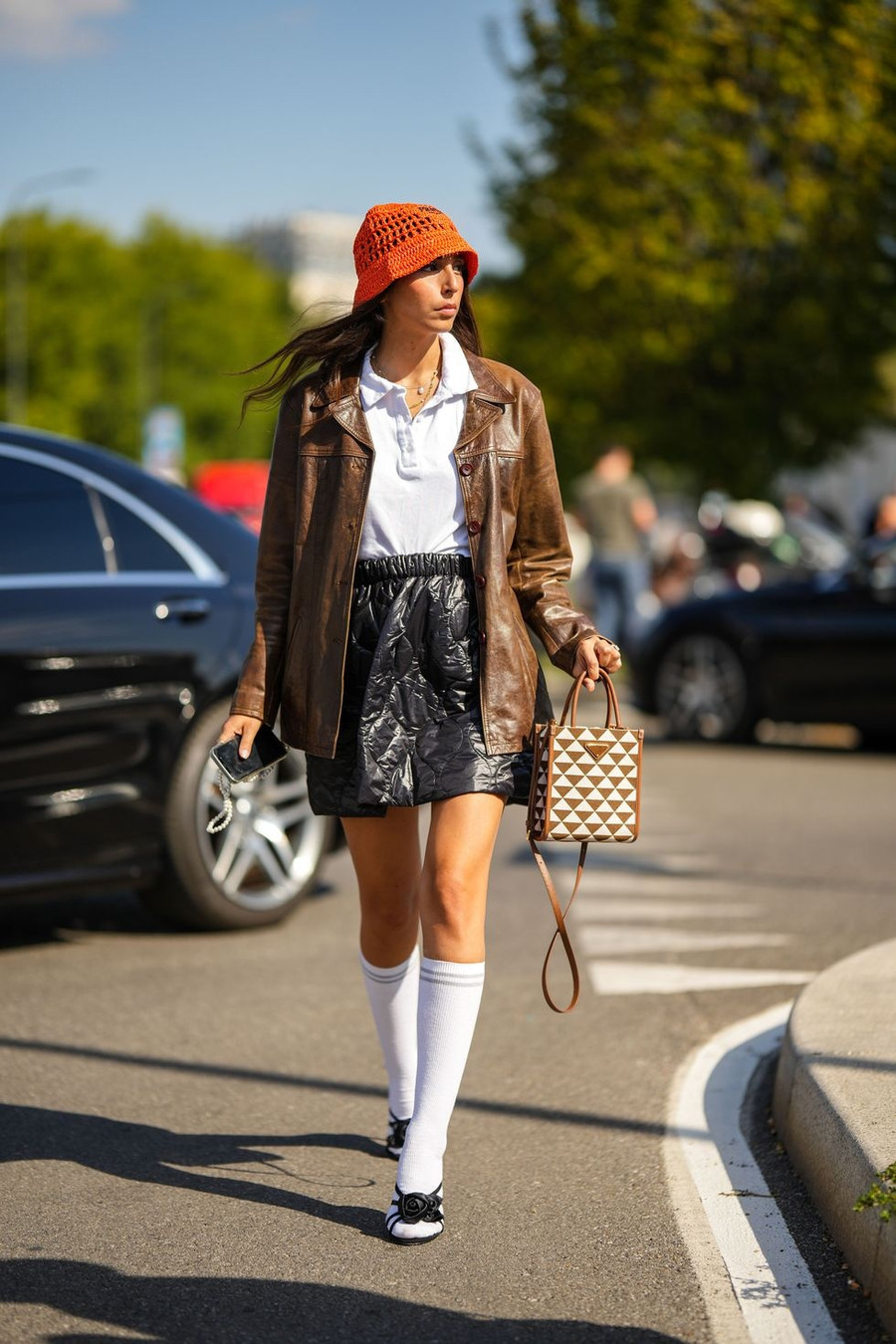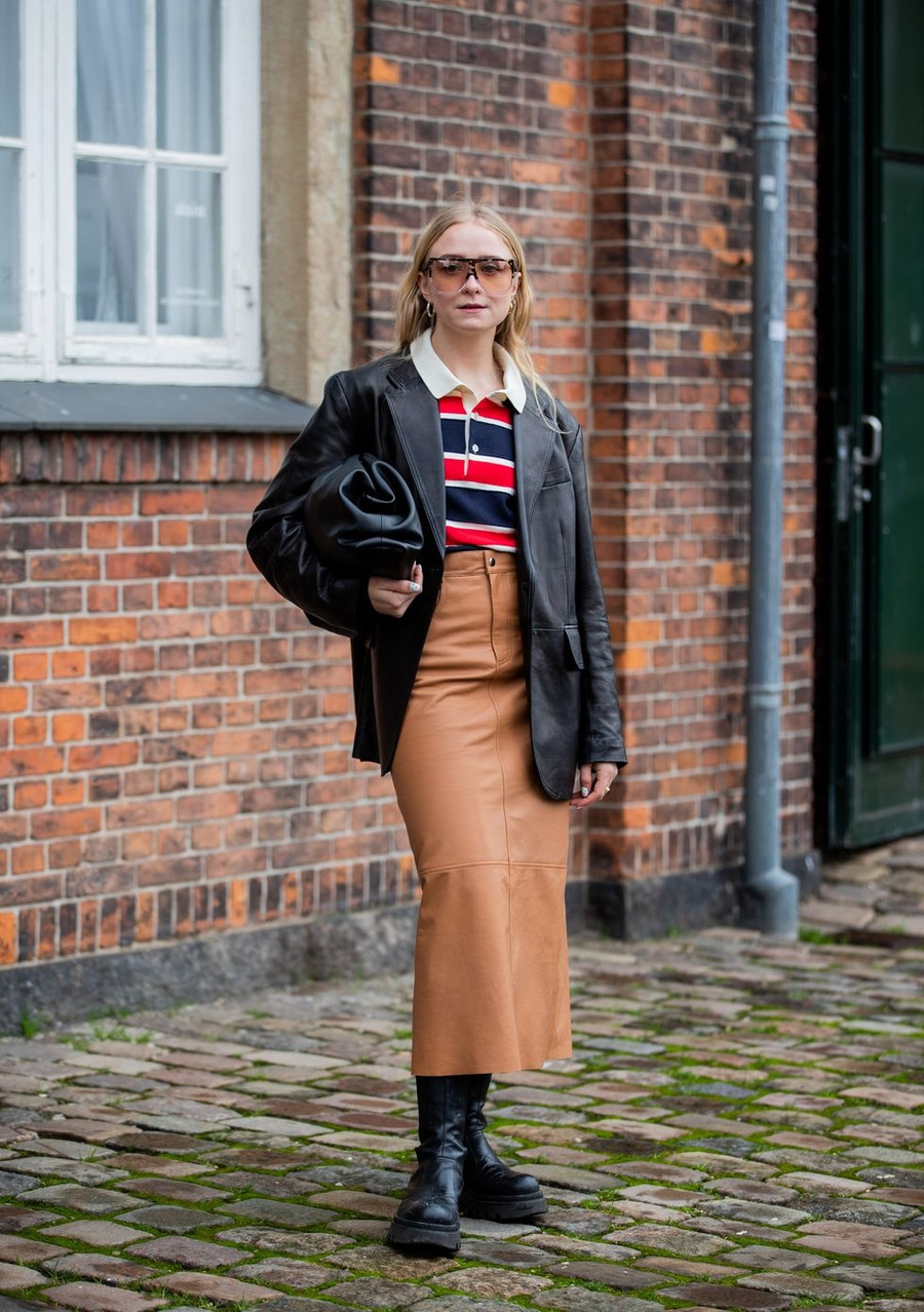 Những chiếc chân váy ngắn vải da nhăn nhúm đang là xu hướng nổi bật dạo gần đây, sẽ rất thú vị khi kết hợp với sandals cao gót, tất cao đến đầu gối, áo polo và áo khoác da mang phong cách cổ điển.