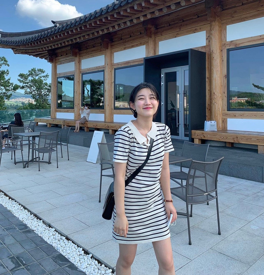 Áo polo dệt kim kẻ sọc là item hoàn hảo trong mùa này khi được kết hợp với chân váy midi và áo khoác da, boots đế dày cùng túi clutch “gối ôm”. Kính râm với tròng kính trong suốt được che kín hầu như gương mặt khiến cho vẻ ngoài càng thêm bí ẩn, quyến rũ.