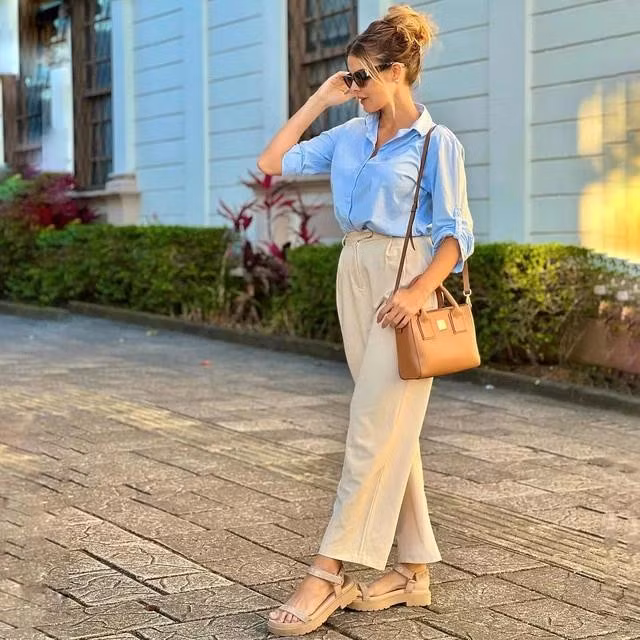 Áo sơ mi xanh đang tự khẳng định là chiếc áo của sự thanh lịch, sang trọng và phù hợp cho người diện bất kể thời gian từ sáng đến tối. Với các màu xanh nhạt, xanh ngọc hoặc xanh thiên thanh, đây là những kiểu phối sơ mi xanh thời thượng trong mùa xuân hè 2025.