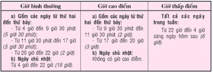 II/ Giá bán điện theo thời gian sử dụng trong ngày (gọi là hình thức ba giá).