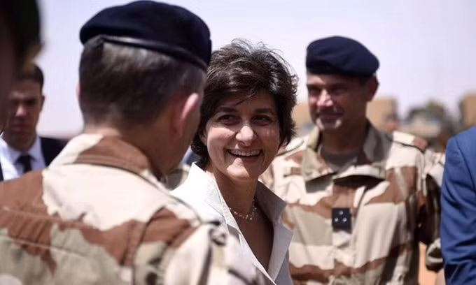 Trong ảnh, bà Goulard duyệt đội danh dự lực lượng chống khủng bố của Pháp ở châu Phi trong chuyến thăm Mali cùng Tổng thống Macron ngày 19-5. Ảnh: AFP