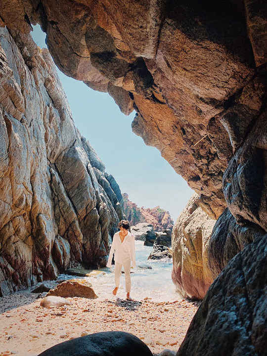 Cù Lao Xanh còn có tên khác là đảo Vân Phi, thuộc xã Nhơn Châu, gần vịnh Xuân Đài, cách Quy Nhơn 24 km, có diện tích khoảng 364 ha. Bãi biển ở đây còn hoang sơ, nước trong vắt, dải cát thoai thoải và bãi đá nhiều hình thù do tạo hóa tạo nên. Ảnh: Phong Vinh.