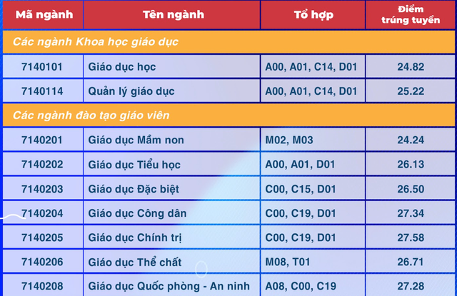Điểm chuẩn của Trường ĐH Sư phạm cụ thể như sau: