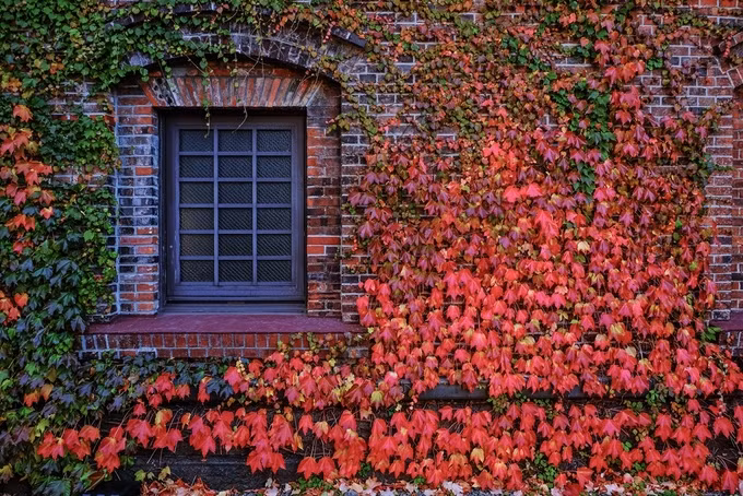 Khoảng tường đỏ lá nổi tiếng ở nhà máy bia Sapporo.