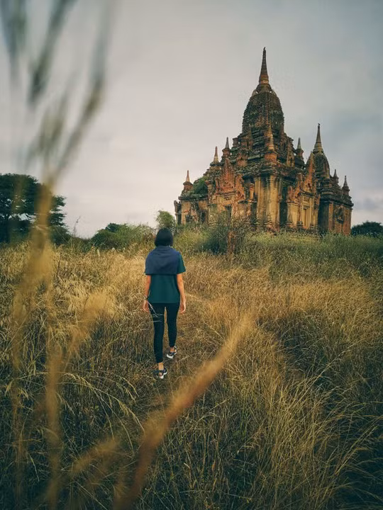Cách thứ hai, phổ thông và đương nhiên được số đông du khách lựa chọn, là leo lên những ngôi đền cổ. Ba ngôi đền cổ được khách du lịch chọn ngắm bình minh nhiều nhất là Shwesandaw, Tayonke Payay và Payathozu. Ở góc này, du khách vẫn có thể thu hết vào mắt toàn cảnh cố đô và cả những chiếc khinh khí cầu đầy màu sắc bay lên cùng ánh mai hồng.