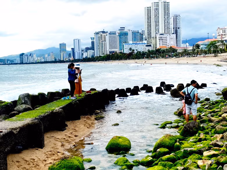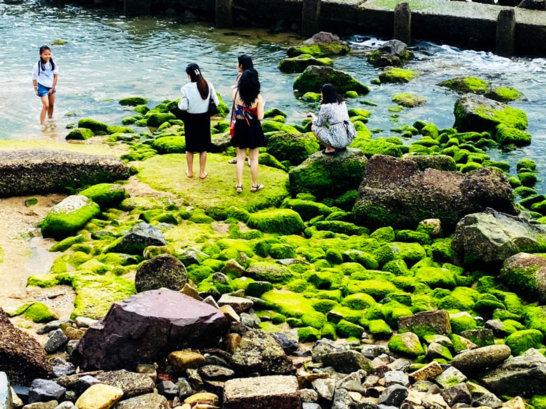 Khá bất ngờ là năm nay, thềm rêu lại xuất hiện, giống như quà tặng của thiên nhiên vào dịp xuân về, cũng như tạo cho du khách khi tìm đến thành phố biển trong những ngày rong chơi và tận hưởng giữa tiết trời xuân. Dường như không ai vội về giữa tiếng sóng biển vỗ tung vào thềm biển, còn rêu xanh thì đẹp giống như một thảm lụa xanh được dệt nên. Chị Nguyên Hằng, đến từ TP Hồ Chí Minh cho biết, nhờ tình hình dịch bệnh ổn định, cả gia đình chị chọn đi Nha Trang bằng xe riêng, chị khá bất ngờ khi tận thấy thềm rêu xanh ngay thành phố. Một số bạn trẻ từ Đà Lạt chọn những góc đẹp để chụp ảnh như đợi những con sóng vỗ tung, làm dáng ở những trụ xi măng. Ngay nơi này có một quán cà phê tên Nha Trang View, khách có thể vừa uống cà phê vừa ngắm rêu, hoặc chỉ gởi xe, rồi theo những bậc cấp xi măng đi xuống biển, hòa lòng mình cùng rêu xanh.