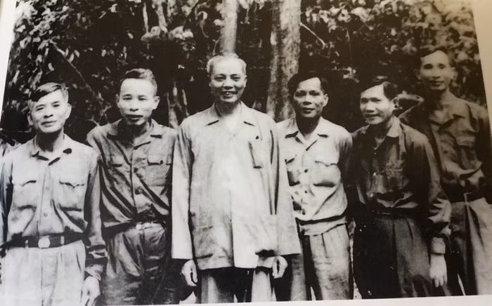 Ông Trần Kiên (thứ 2 từ trái qua) cùng Ban chủ nhiệm Hậu cần Quân khu 5, năm 1973. Ảnh Tư liệu