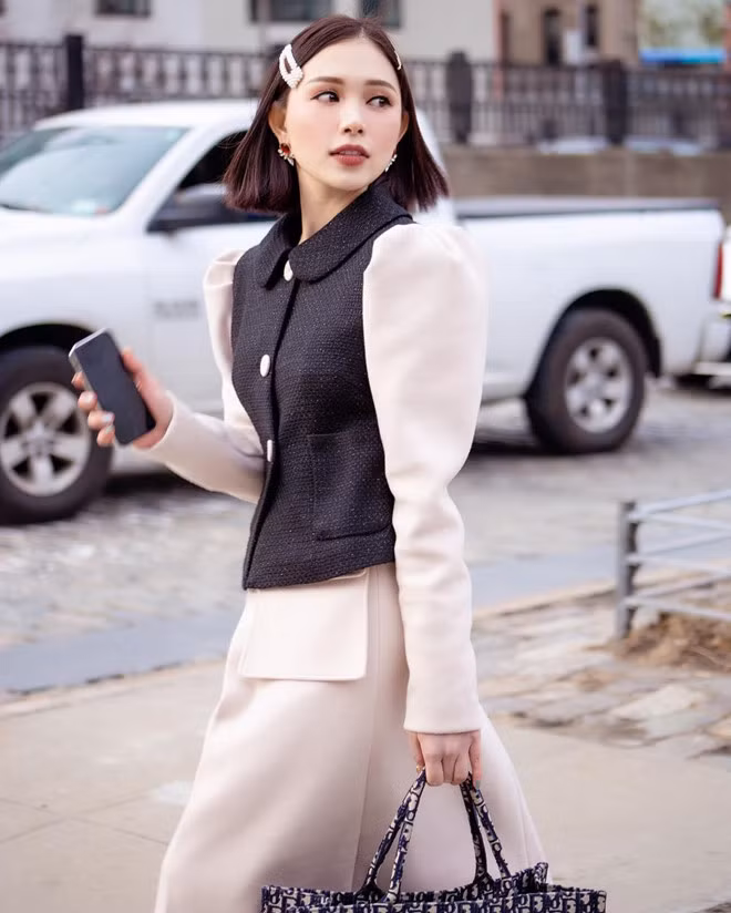 Linh Rin cũng không nằm ngoài cơn sốt Dior của nhiều tín đồ thời trang hiện nay. Thay vì sắm chiếc túi Saddle sành điệu, cô lại có lựa chọn khác là túi tote có họa tiết tương tự. Chiếc túi tiện lợi nhưng vẫn thời thượng này được bán với giá lên đến 2.650 USD.