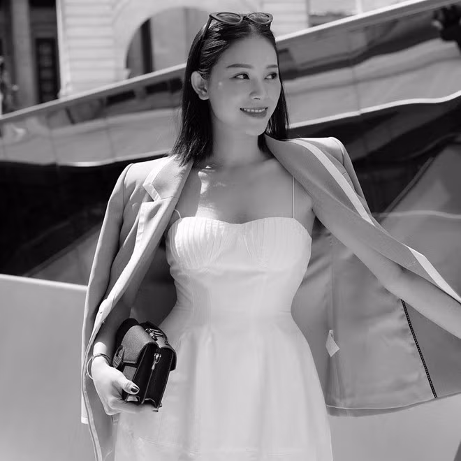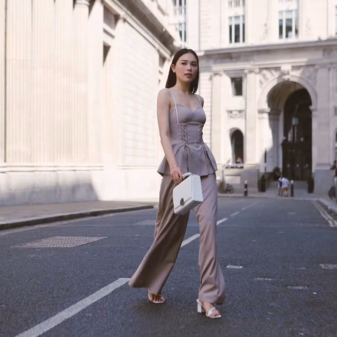 "Bạn gái tin đồn" của Phillip Nguyễn khá chuộng mẫu áo, váy cúp ngực. Item này đem đến sự gợi cảm, quyến rũ, song cũng không làm mất đi độ thanh lịch khi mix với áo vest hoặc quần ống rộng màu trung tính. Những chiếc túi nhỏ nhắn xách trên tay luôn là lựa chọn thích hợp nhất đối với set đồ thế này.