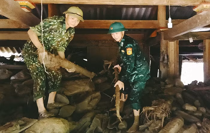 Ngổn ngang sau lũ là hàng ngàn m3 đất đá tràn vào ngập kín nhà, có nhà đá tuôn ồ ạt chất kín cao gần 3 mét. Các cán bộ, chiến sĩ Đồn biên phòng Nậm Cắn, hay các đồn Na Ngoi, Keng Đu, Mỹ Lý đã trần lưng, lao vào dọn dẹp, vác đá, ủi bùn... vô vàn công việc không tên để phần nào làm giảm đi thiệt hại cho bà con, nhanh chóng ổn định cuộc sống.