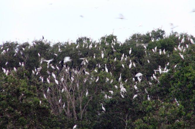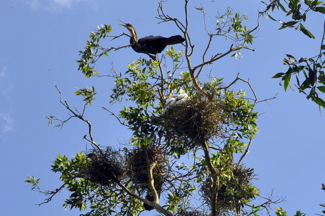 Tiếng chim gọi bầy mỗi lúc một rộn ràng. Nhờ trưởng đoàn Trần Thế Dũng sớm hôm liên hệ và cam kết với lãnh đạo vườn quốc gia, đoàn chúng tôi có bốn người được đặc cách len thuyền vào sâu trong khu cấm địa, leo lên chòi canh dành riêng cho cán bộ kiểm lâm.