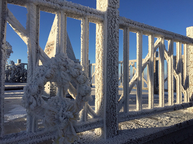 Nhiều du khách tham quan bất ngờ và ấn tượng khi bước ra khỏi quần thể ga đến cáp treo trên đỉnh Fansipan: Toàn bộ không gian thiên nhiên, cây cỏ, chóp tam giác trên đỉnh 3.143m, khu vực sàn gỗ quanh đỉnh, các bậc thang lên đỉnh,… phủ kín lớp băng tuyết dày trắng xóa.