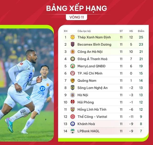 Săn hụt ngôi đầu của CLB Nam Định nhưng CLB Bình Dương cũng hài lòng với việc chiếm lĩnh hạng nhì với 23 điểm. Đây là thành tích rất ấn tượng của các học trò HLV Lê Huỳnh Đức, trên cả kỳ vọng ở mùa giải năm nay.