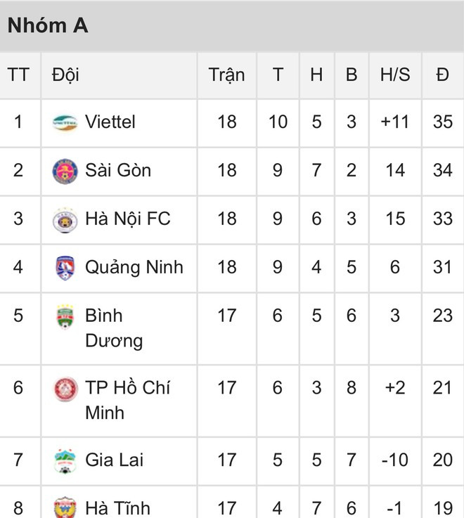 Trên sân Hàng Đẫy, đội Viettel đạt mục tiêu chia điểm trước Hà Nội FC trong trận đấu quyết liệt, kết thúc không có bàn thắng. 1 điểm có được trước đối thủ được xem là ứng viên sáng giá nhất cho danh hiệu vô địch giúp Viettel đạt 35 điểm, giữ vững ngôi đầu với khoảng cách 2 điểm so với Hà Nội FC.