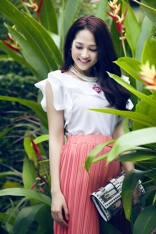 Nữ ca sĩ khoe vẻ rạng rỡ như một nàng công chúa dưới ống kính của nhiếp ảnh gia Phạm Hoài Nam.