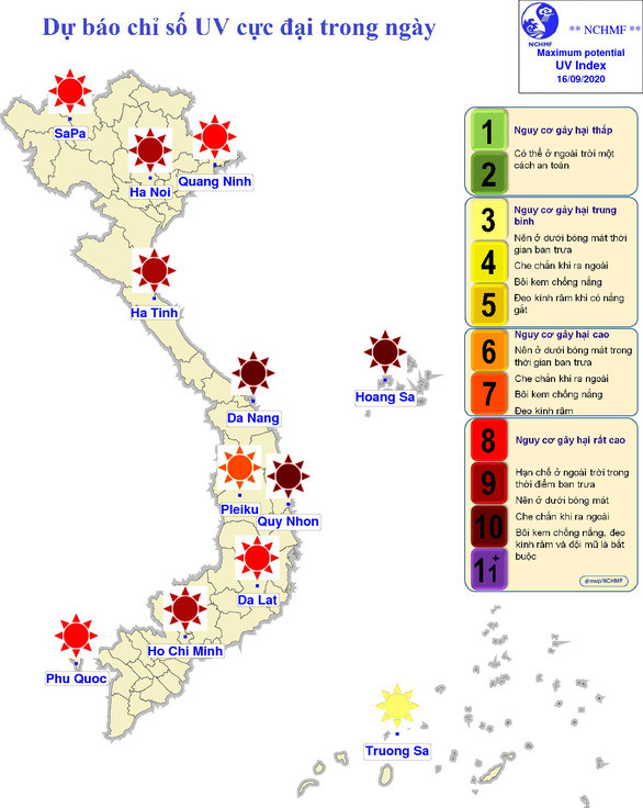 | Hôm nay chỉ số tia UV ở ngưỡng nguy cơ gây hại rất cao
