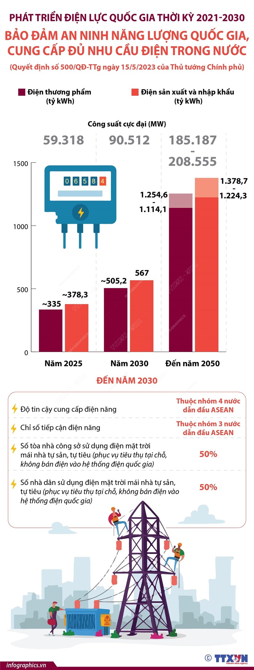 Quy hoạch phát triển điện lực quốc gia thời kỳ 2021-2030, tầm nhìn đến năm 2050 (gọi tắt là Quy hoạch điện VIII) đặt mục tiêu đảm bảo vững chắc an ninh năng lượng quốc gia, đáp ứng mục tiêu phát triển kinh tế-xã hội với mức tăng trưởng GDP bình quân khoảng 7%/năm trong giai đoạn 2021-2030 và khoảng 6,5-7,5%/năm giai đoạn 2031-2050.