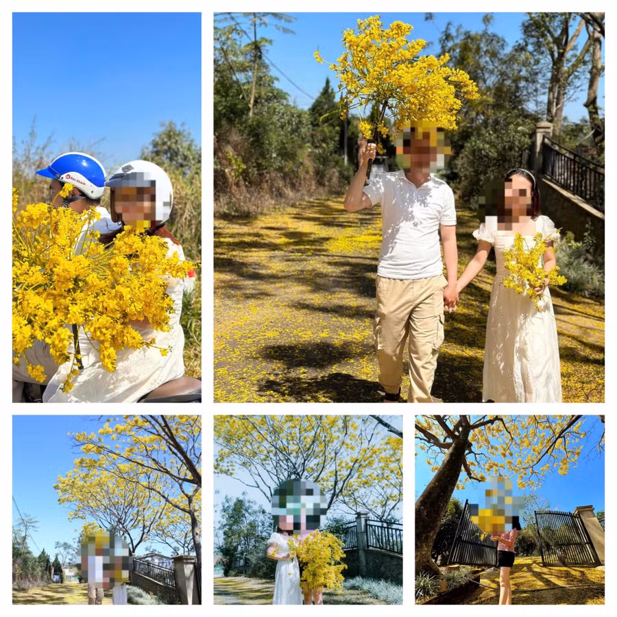 Ngoài những tấm hình mà nhóm người ôm cành hoa phượng vàng chụp hình, thì clip nói trên cho thấy, trong lúc 2 người phụ nữ đi dưới tán phượng vàng đang nở rực ở khu vực Senvilla Bautique ở đường Mạc Đỉnh Chi (Phường 2, TP Bảo Lộc). Lúc này, bỗng nhiên từ trên cao, một cành phượng vàng rơi xuống, trùng với lúc 2 người phụ nữ này quay lại nhìn và òa lên phấn khích. Sau đó, 2 cô gái chạy tới nhặt cành phượng vàng, ôm vào lòng và tiếp tục tạo dáng để chụp hình cùng nhau.