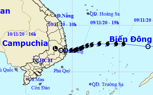 Trước đó, khoảng 10 giờ ngày hôm nay 10-11, vùng tâm bão số 12 đã đi vào đất liền các tỉnh từ Bình Định đến Ninh Thuận và suy yếu thành áp thấp nhiệt đới.