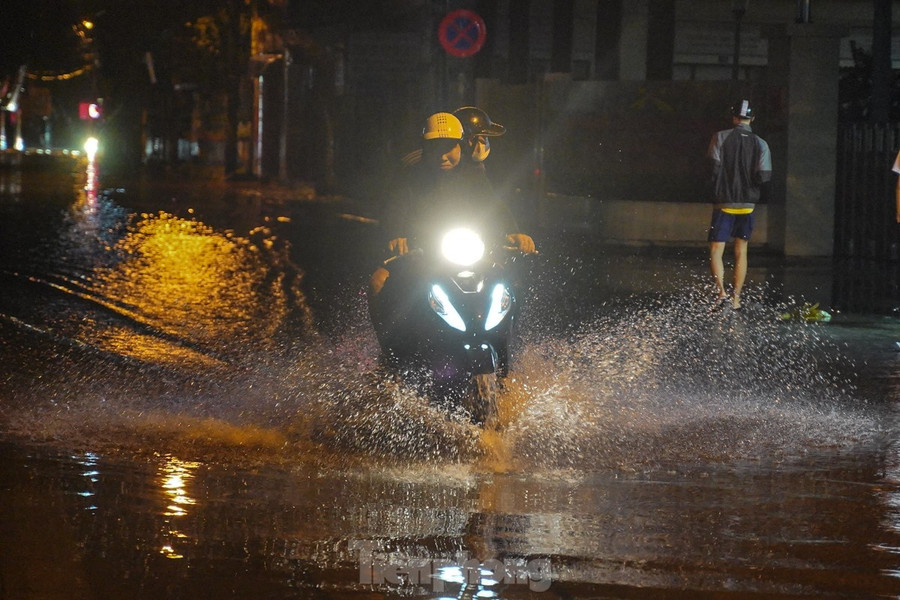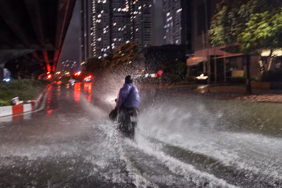 | Dù cơn mưa đã ngừng rơi vào rạng sáng 8/9, nhưng theo ghi nhận của PV Tiền Phong, đường Triều Khúc vẫn ngập sâu, nước lênh láng khắp nơi. |