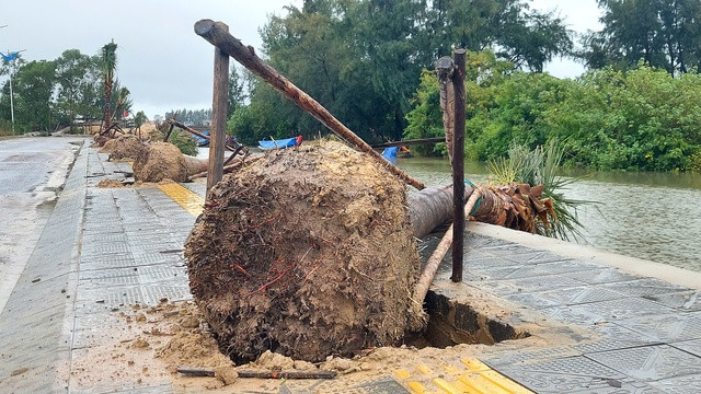 Tuy nhiên, dù bão chưa đổ bộ, nhưng nhiều cây xanh mới trồng chưa lâu tại khu vực đường dẫn vào cảng du lịch đang thi công tại khu phố 6 (thị trấn Gio Linh) đã bật gốc, đổ ngổn ngang.