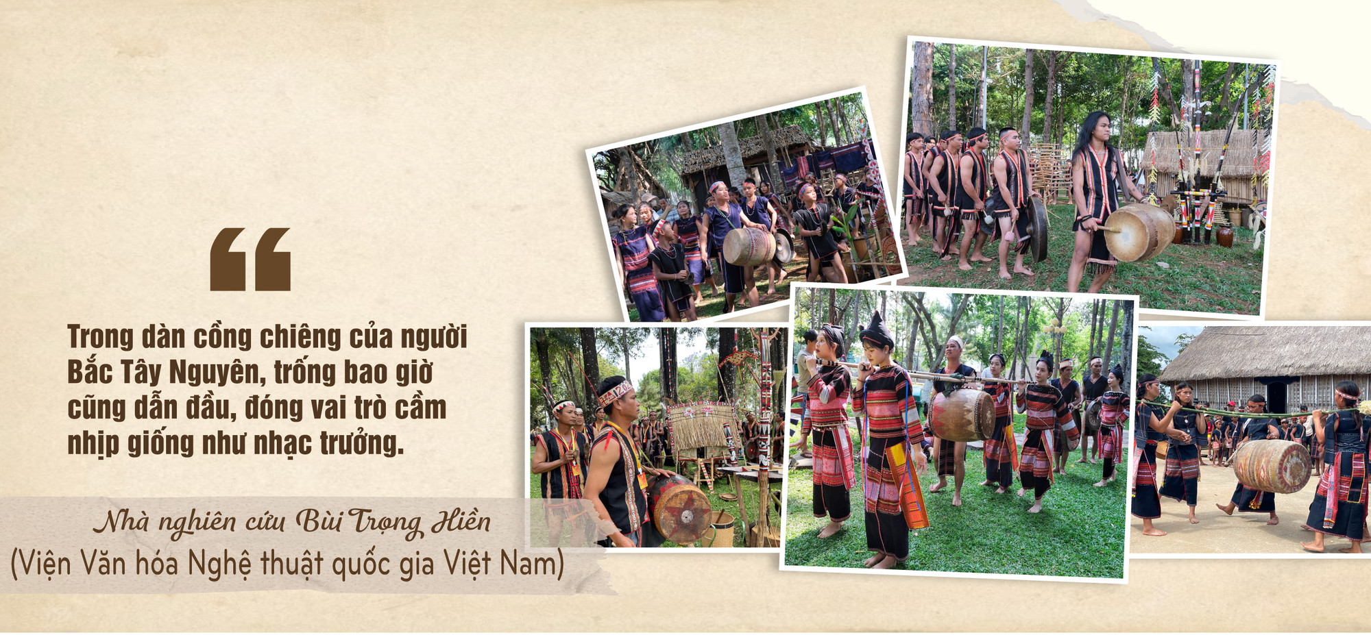 Tại làng Stơr-quê hương Anh hùng Núp, người Bahnar ở đây cũng vừa làm xong 2 cái trống da bò cỡ vừa, loại dùng đánh trong dàn cồng chiêng. Anh Đinh Mỡi-Công chức Văn hóa-Xã hội xã Tơ Tung (huyện Kbang) thông tin: “Trống do 2 nghệ nhân Đinh Dom, Đinh Hmê làm từ thân cây gỗ lim. Già làng phải làm lễ cúng xin thần cây để hạ cây xuống, cầu cho tiếng trống vang khắp buôn làng, phù hộ cho người dân mạnh khỏe để có sức đánh chiêng, múa trống, lao động sản xuất. Bây giờ, chỉ những người già mới có đủ kinh nghiệm để làm những cái trống bền đẹp, âm thanh vang xa. Những ngày vừa qua, khi 2 nghệ nhân làm trống, thanh niên trong làng cũng đến học hỏi để sau này kế tiếp công việc này. Đối với người Bahnar, tiếng chiêng, tiếng trống không thể tách rời trong đời sống. Bất kể sự kiện gì trong làng cũng đều bắt đầu từ tiếng trống”.