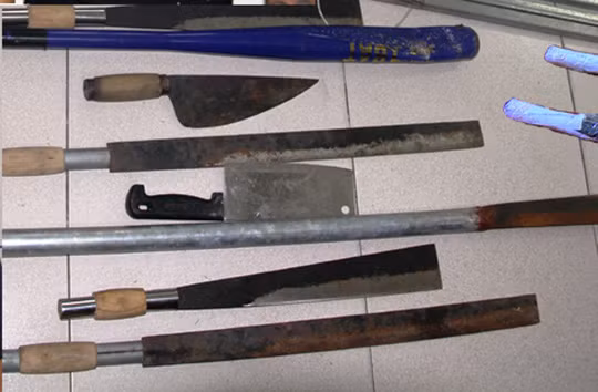 | 2 khẩu súng và số hung khí mà cơ quan công an thu được tại công ty đòi nợ thuê |