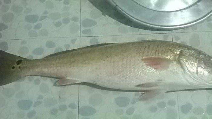 Trong lúc đi đánh lưới, một người dân tại Bình Định đã bắt được một con cá lạ nặng 4,5 kg nghi cá sủ vàng.
