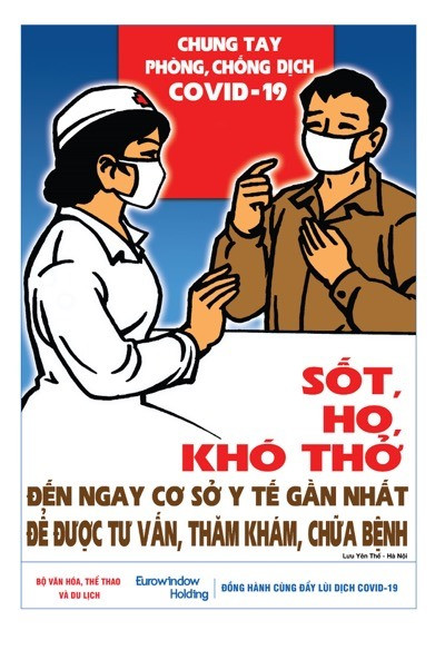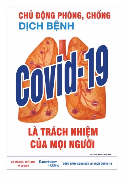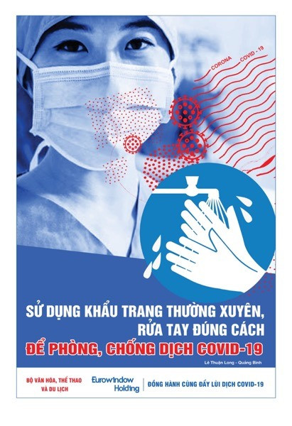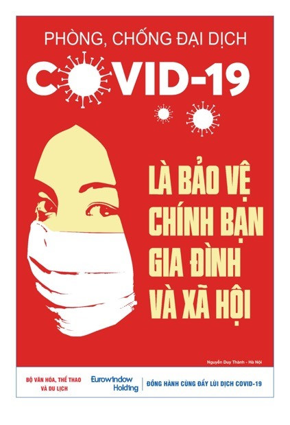 | Cuộc vận động sáng tác Tranh cổ động phòng chống dịch COVID-19 do Cục Văn hóa cơ sở (Bộ Văn hóa, Thể thao và Du lịch) tổ chức cấp tốc từ ngày 10 - 15. 3.2020. Tuy eo hẹp thời gian nhưng sau 5 ngày, Ban Tổ chức đã nhận được 103 tranh tham gia của 23 họa sĩ trên toàn quốc. Có những họa sĩ gửi nhiều tranh tham dự, như họa sĩ Đỗ Trung Kiên có tới 10 tranh đa dạng phong cách. Ảnh: BVHTTVDL. |