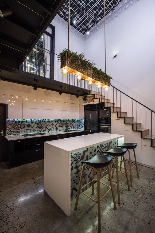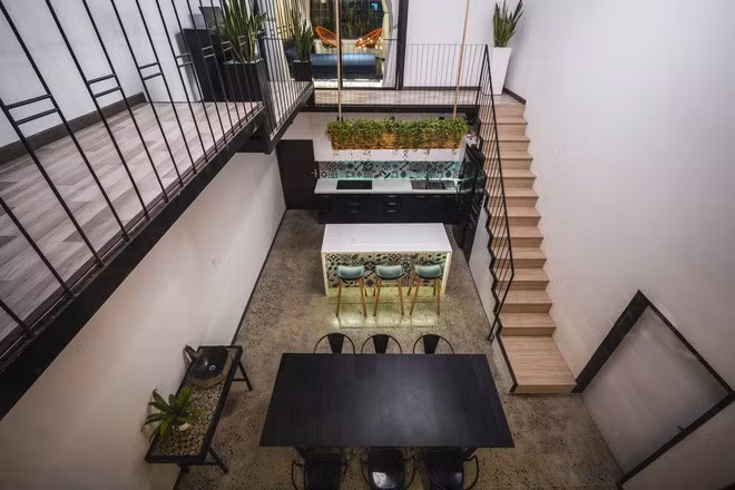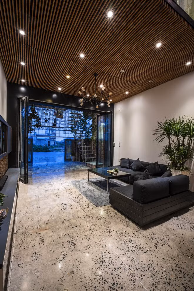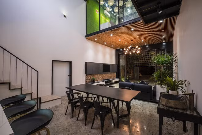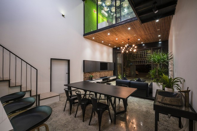 Khoảng trần bằng nứa là điểm nhấn đẹp cho tầng trệt.