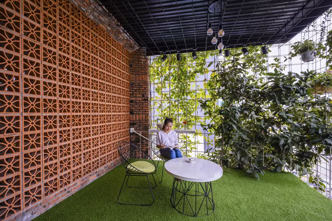 Khoảng sân vườn thư giãn kết nối với phòng làm việc.