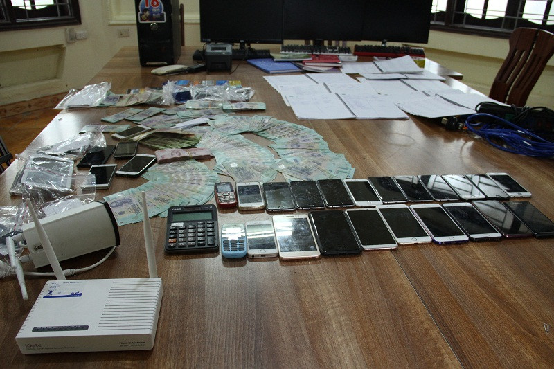 Vật chứng thu giữ gồm 12 bộ máy vi tính, 55 chiếc điện thoại di động, hơn 500 triệu đồng tiền mặt và nhiều đồ vật, tài liệu khác có liên quan.