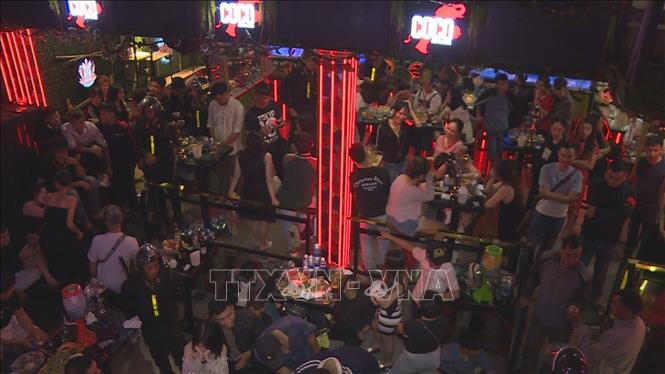 Lực lượng chức năng kiểm tra tại quán bar trên địa bàn thành phố Buôn Ma Thuột. Ảnh: TTXVN phát