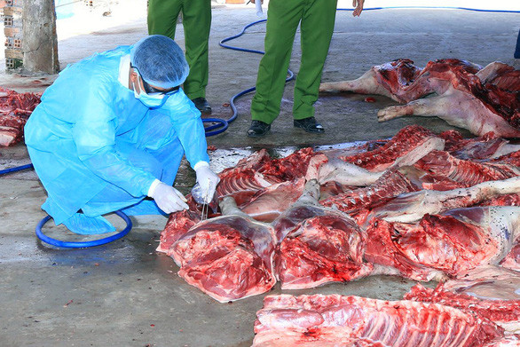 Vào thời điểm kiểm tra, cơ sở này đang xử lý 12 con heo với trọng lượng gần 2 tấn, trong đó, có 6 con heo đã chết. Ngoài ra, lực lượng chức năng còn phát hiện 8 thùng xốp và 2 tủ cấp đông chứa nhiều sản phẩm thịt heo đã bốc mùi.