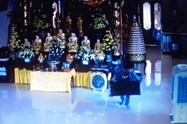 Cảnh cũng được xác định là đối tượng đã đột nhập Chùa Tâm Ấn (ngày 27/4) trộm thùng tiền công đức được camera an ninh nhà chùa ghi lại.